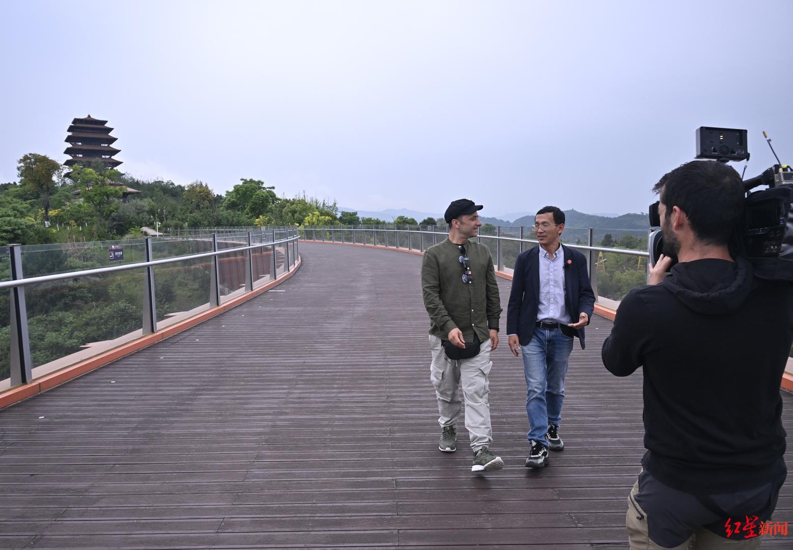 外景主持人Marius Damian在拍摄间隙接受采访时表示,这是他首次来到成都。此前对这座城市的认知主要停留在“熊猫之都”,但实地体验后,令他印象更深的,是城市现代建筑与自然环境之间的融合。“这里的建筑与自然结合得很好,人们非常重视让自然留在身边,这一点让我印象深刻。”他说。